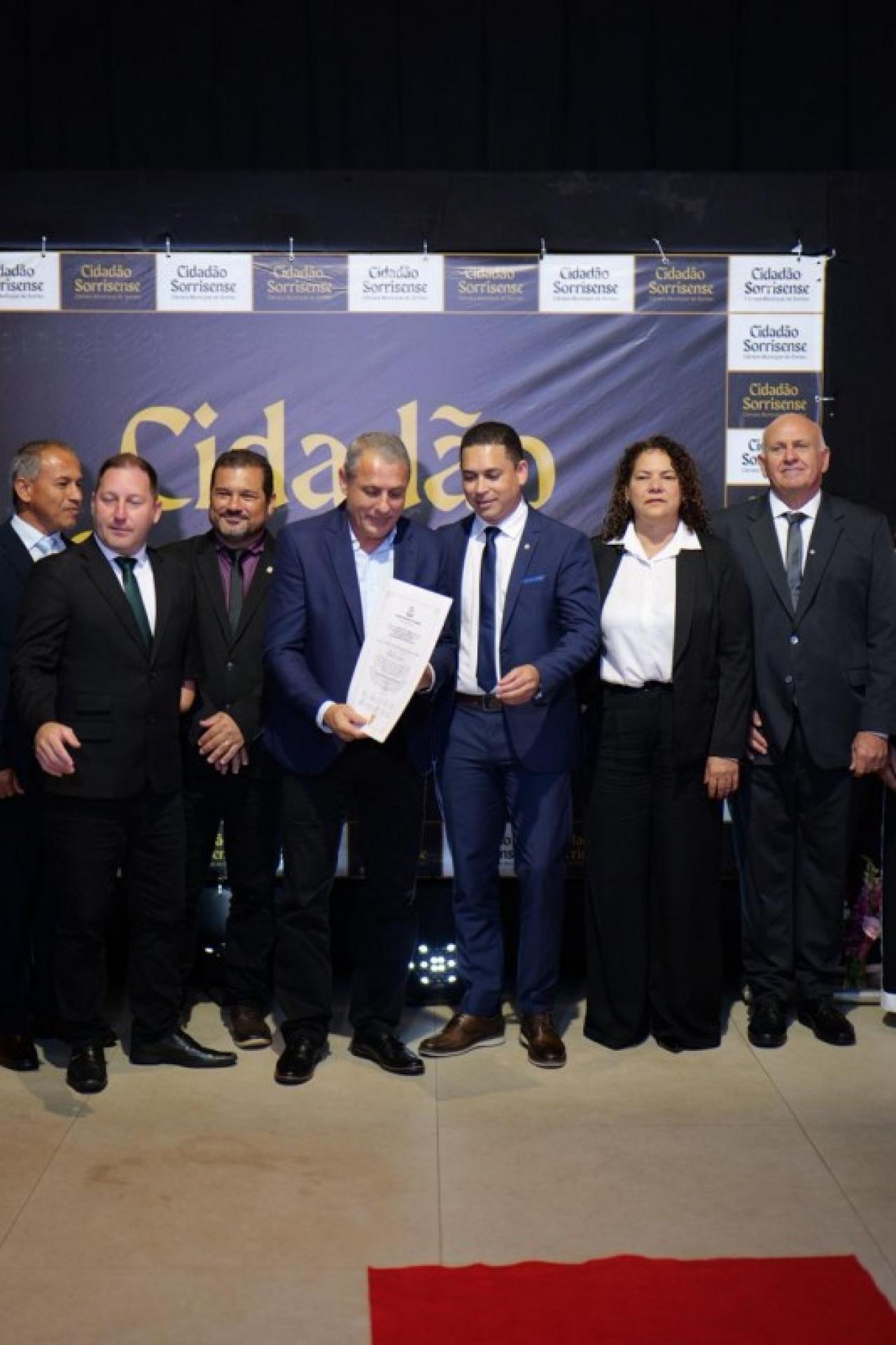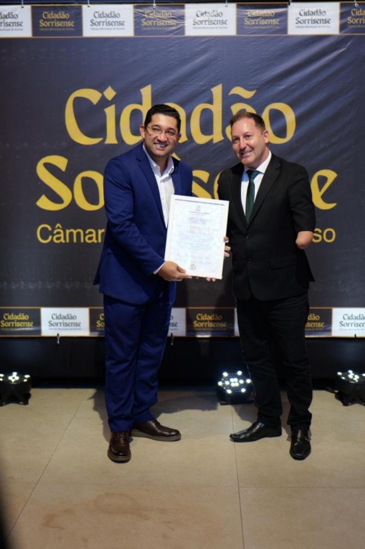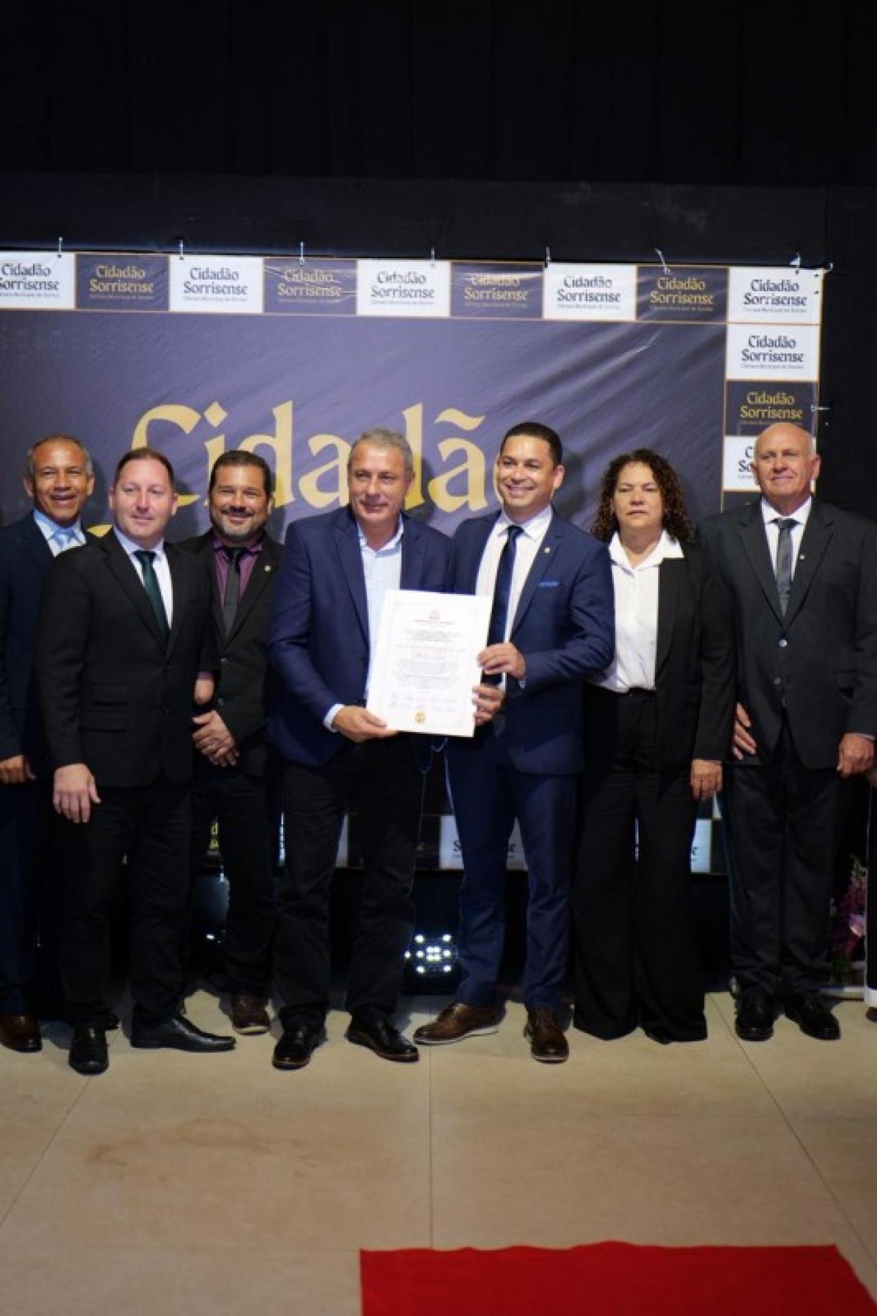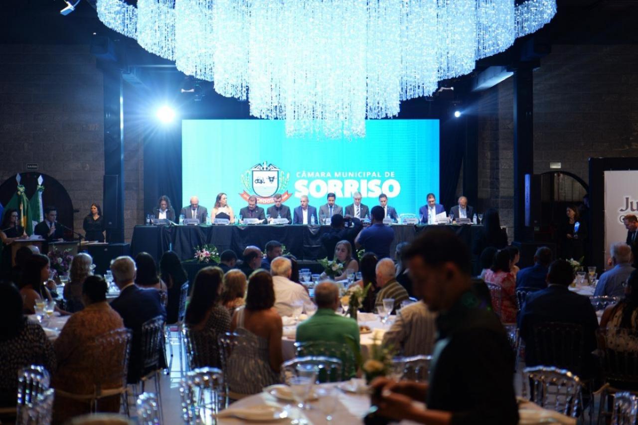 Em paralelo, foi conferido o Título de Cidadão Sorrisense a 42 personalidades que, se destacaram por suas relevantes contribuições em diversas áreas, promovendo o desenvolvimento social, econômico ou cultural de Sorriso. A honraria é um reconhecimento público a quem dedica esforços para o progresso da comunidade.