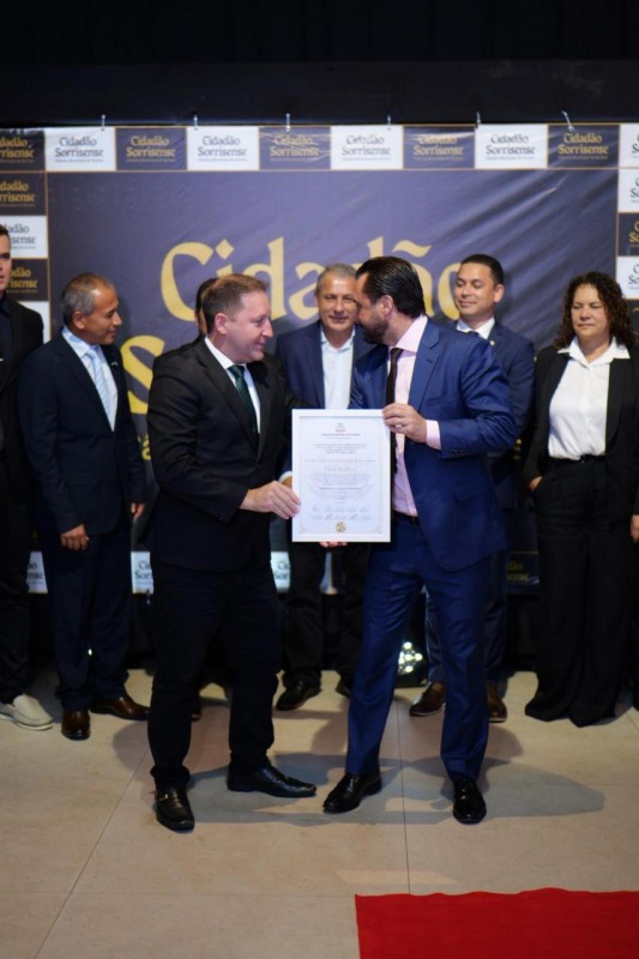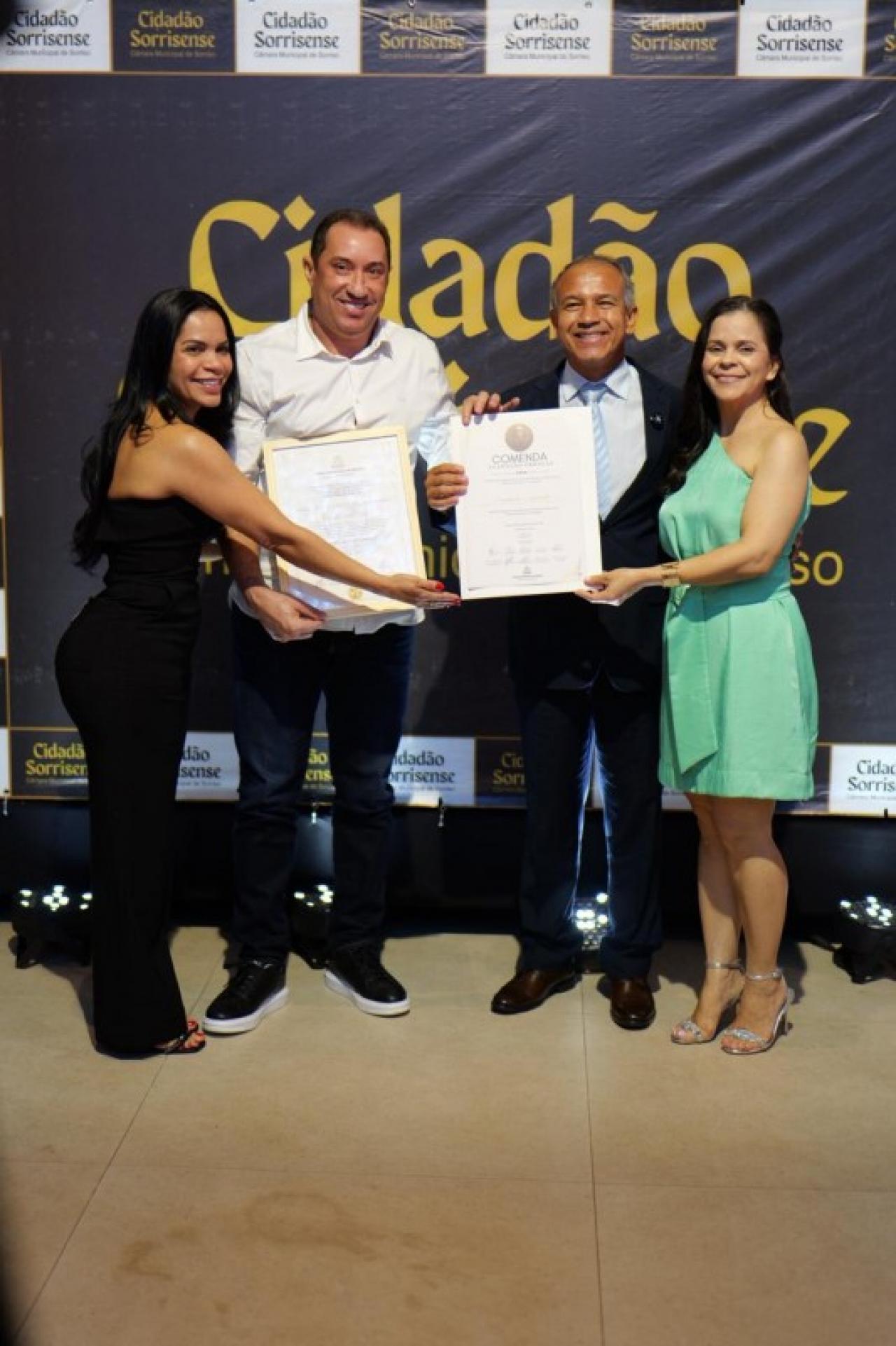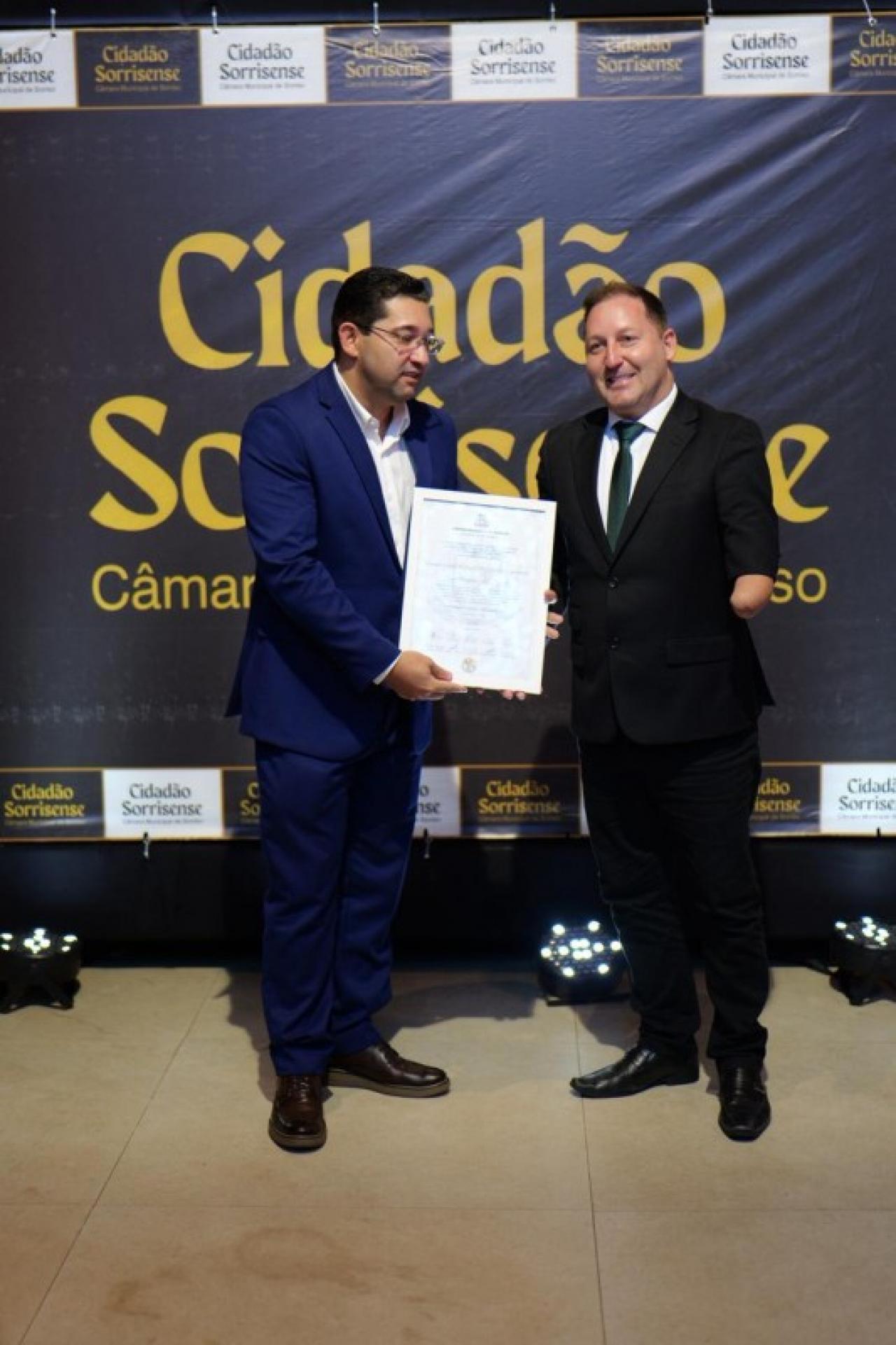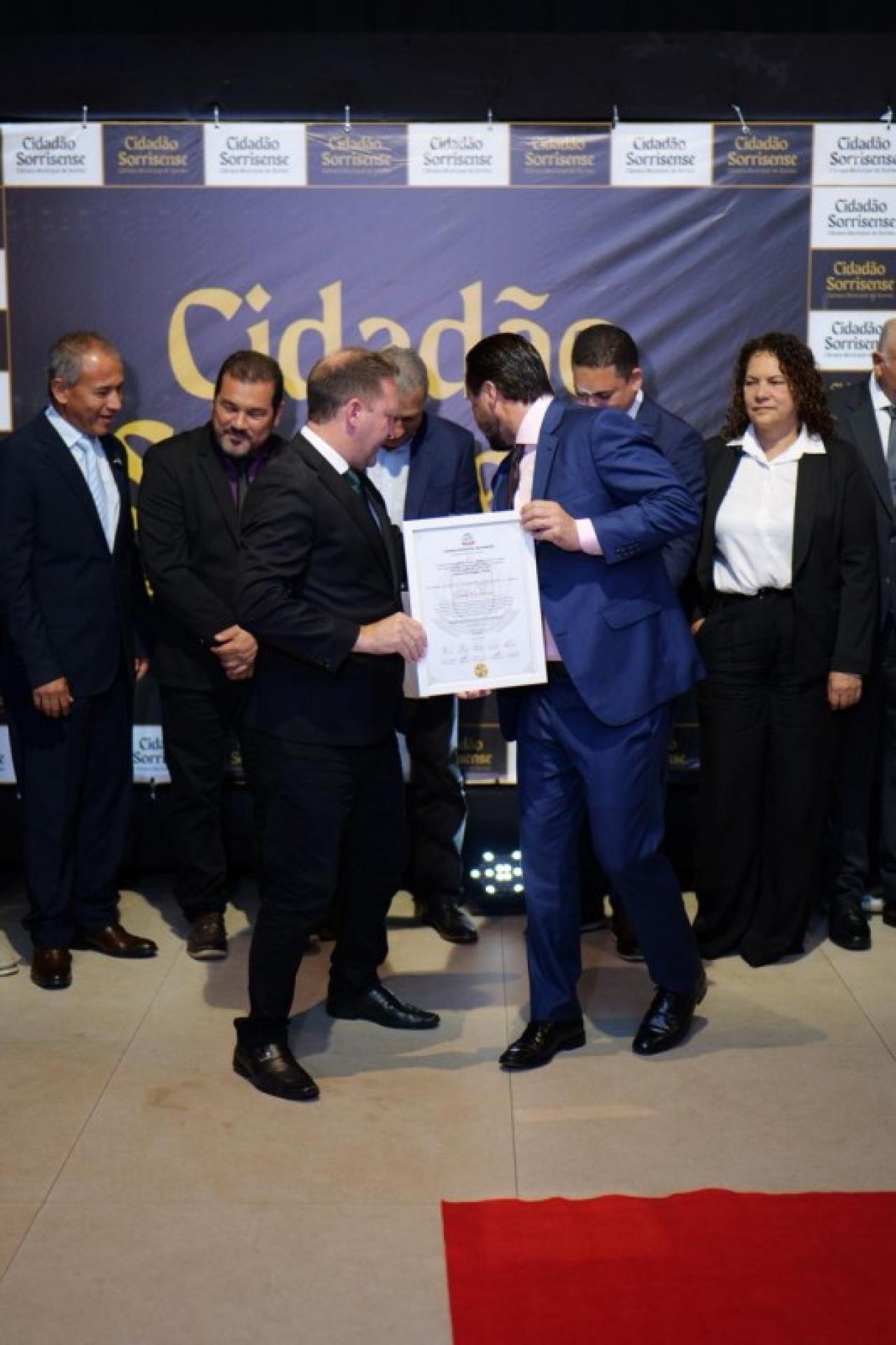 Em paralelo, foi conferido o Título de Cidadão Sorrisense a 42 personalidades que, se destacaram por suas relevantes contribuições em diversas áreas, promovendo o desenvolvimento social, econômico ou cultural de Sorriso. A honraria é um reconhecimento público a quem dedica esforços para o progresso da comunidade.